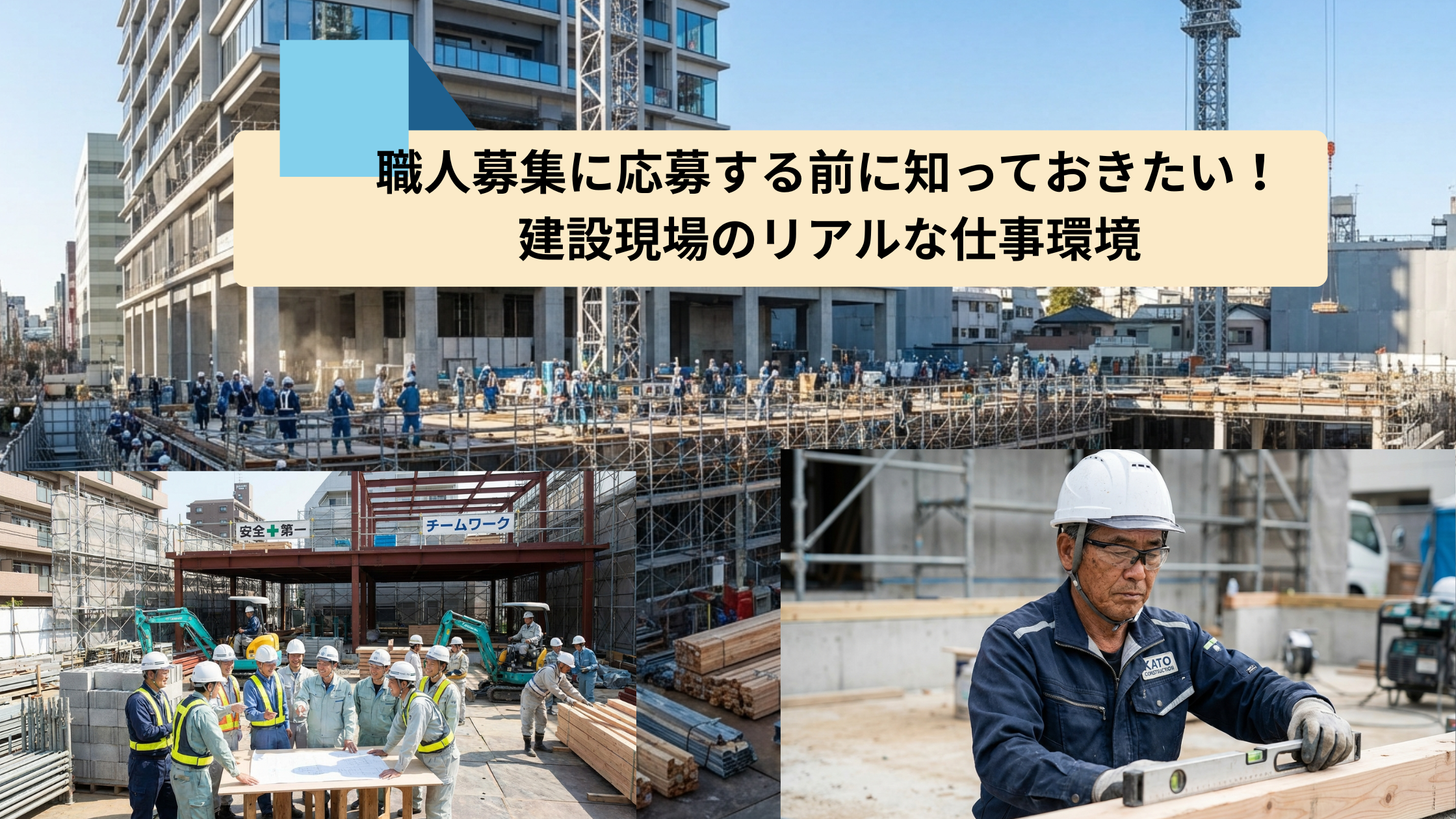 建設現場の仕事は、テレビや映画でイメージするものとは異なる部分も多くあります。本記事では、職人募集に応募を検討されている方に向けて、建設現場のリアルな仕事環境・労働条件・やりがいを包み隠さずお伝えします。